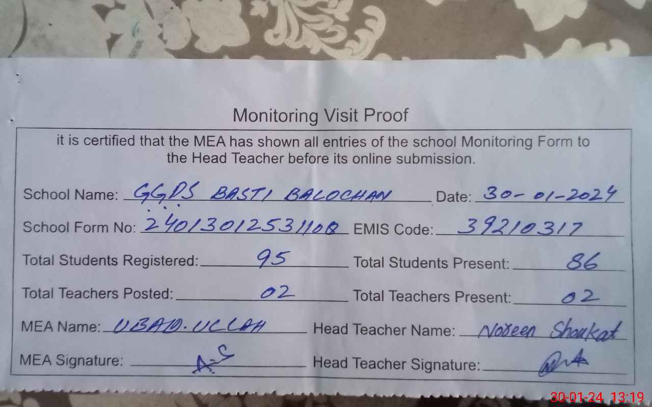 | EMIS Code: 39210317 | Name of School: GGPS BASTI BALOCHAN P/O MALKA HANS | |||