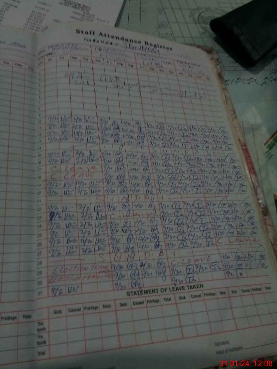 | Leave | Duty | Absent | Maternity | Medical | Ex- Pak |