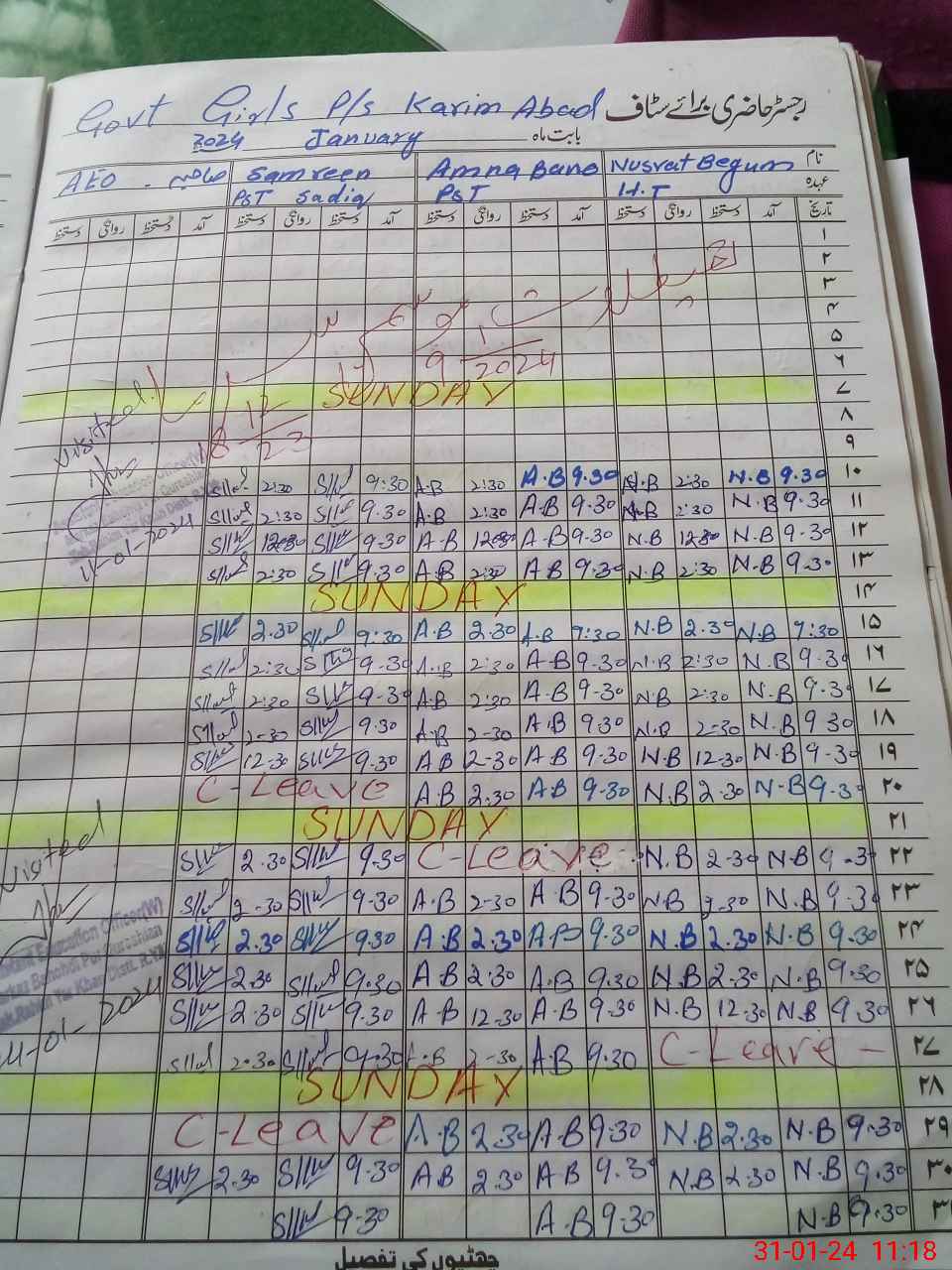 | CNIC | Full Name | Designation | R/C | Absence During Last Calender Month |