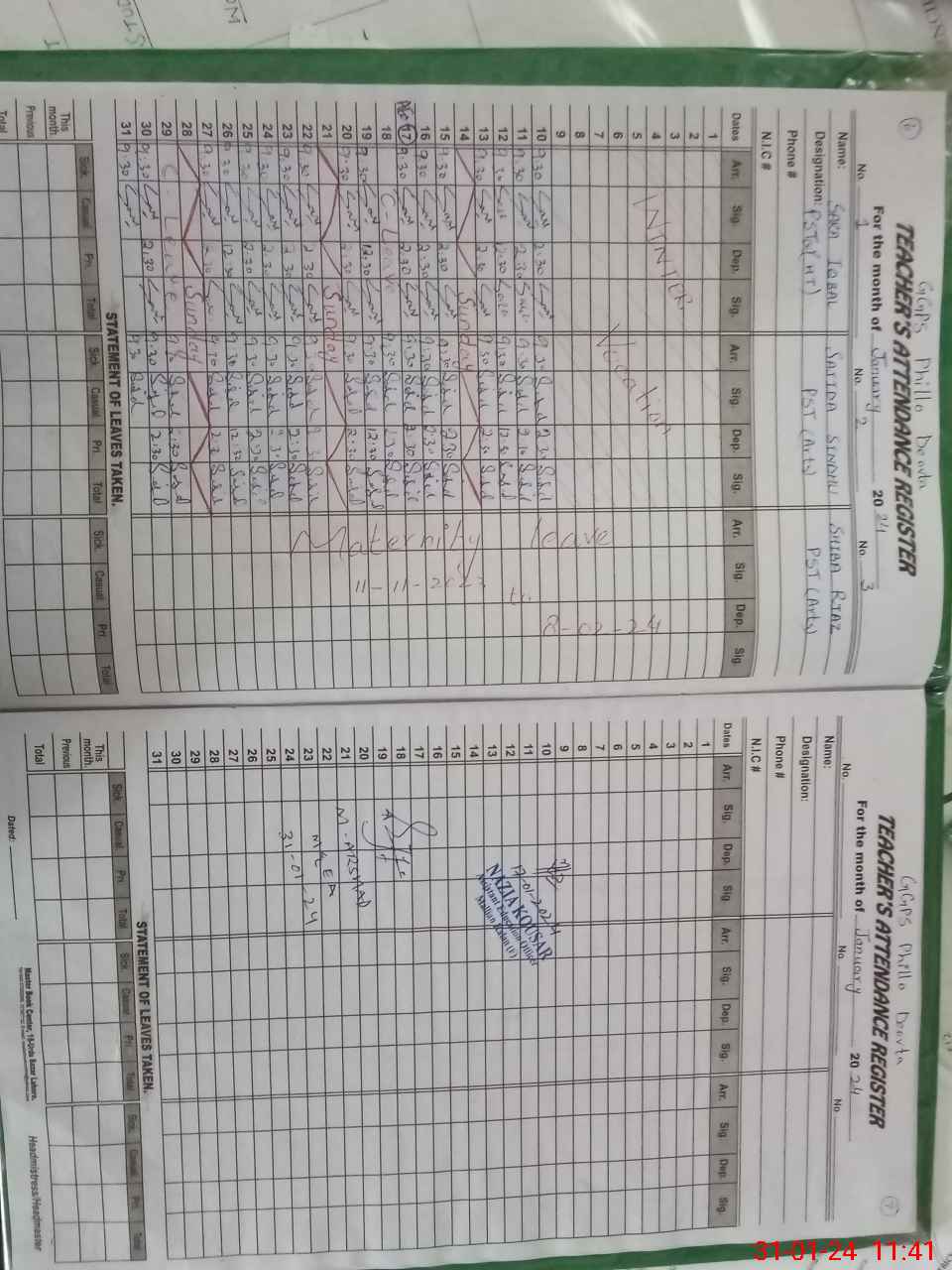 | 35**** | Sh**** Ri**** | 1 | 1 | 0 | 0 | 0 | 0 | 0 | 0 | 0 | 0 | 0 | Maternity |