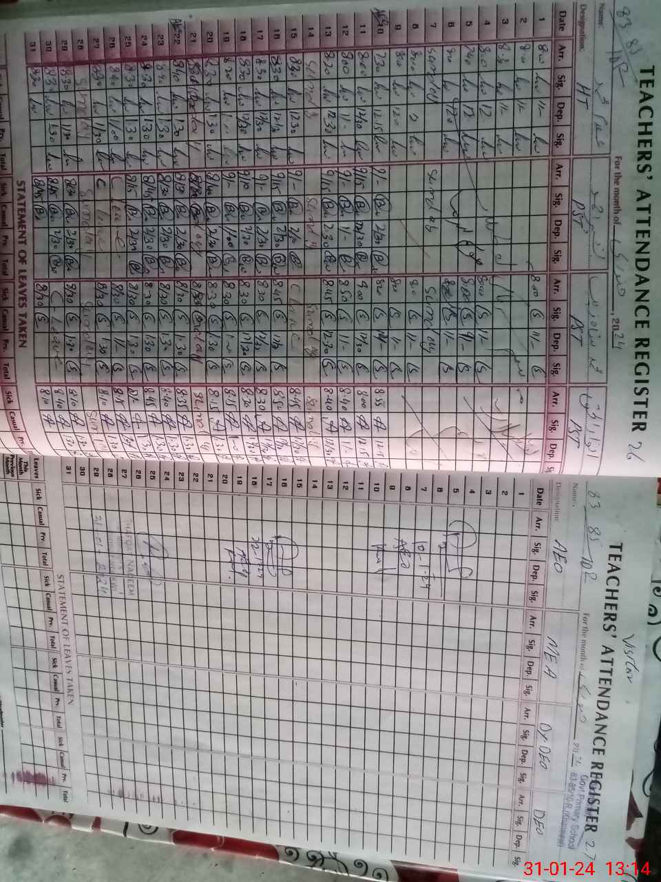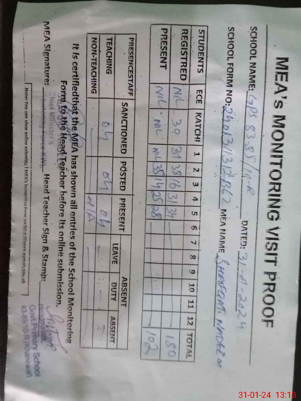 | Attendance Register | Head Teacher | MEA with School | Visit Proof |