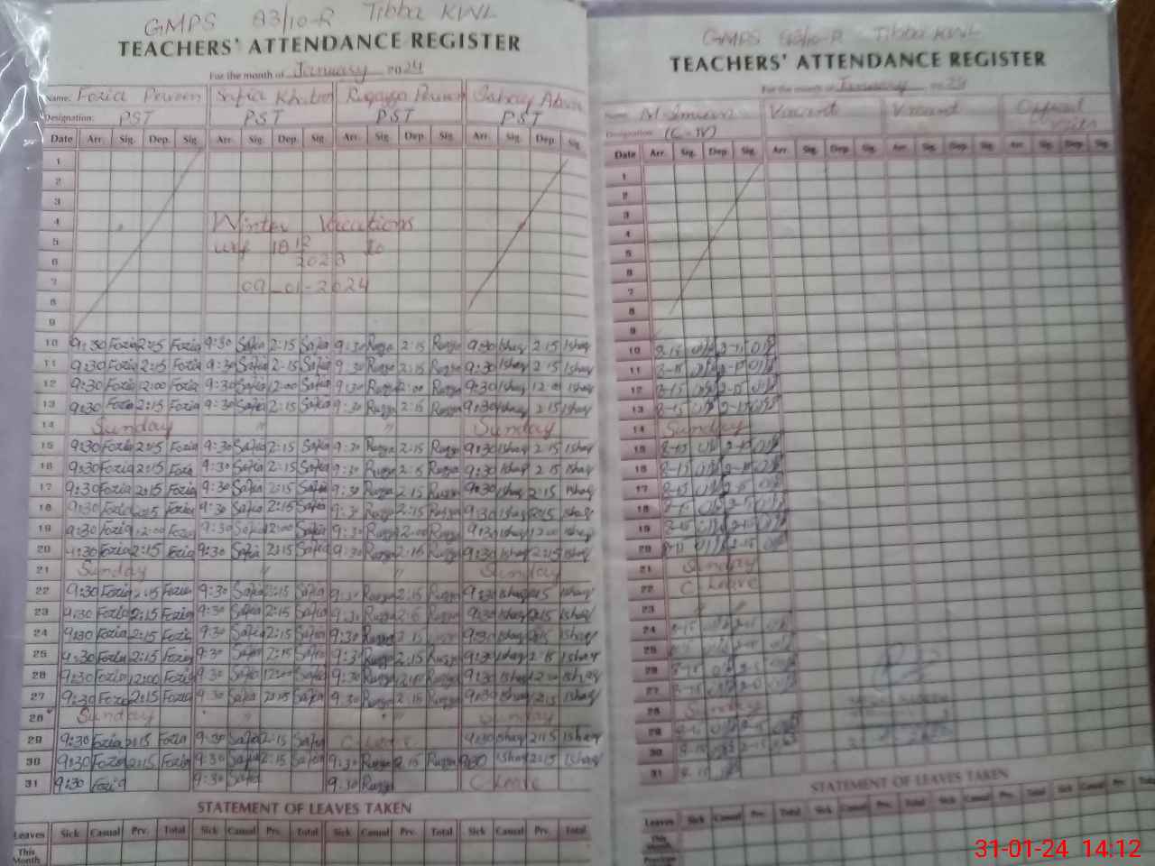 | CNIC | Full Name | Designation | R/C | Absence During Last Calender Month |