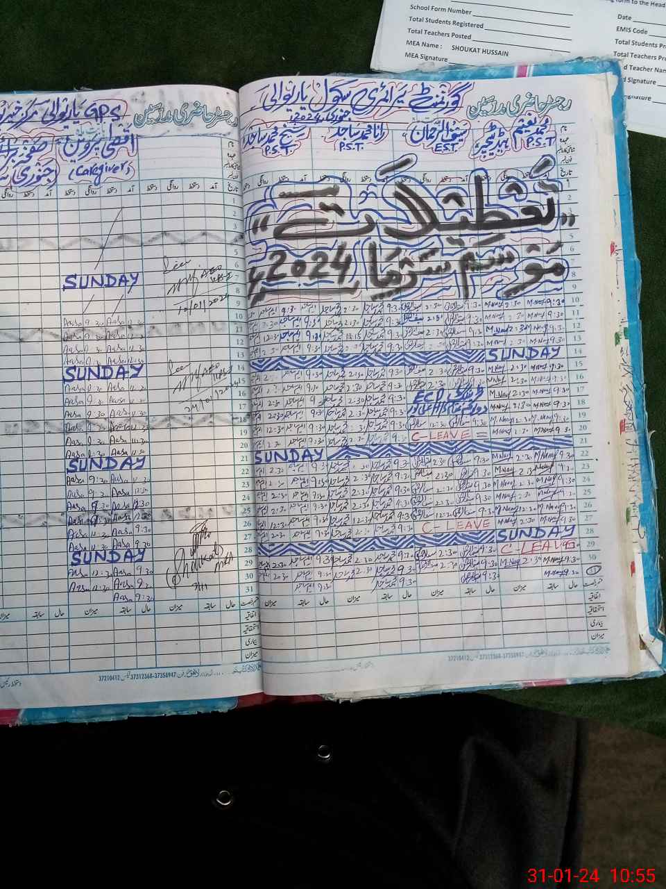 | Name: MU**** NA**** Designation: (School Headmaster's/Headmistress's) PST Phone/Cell Number: 03**** |