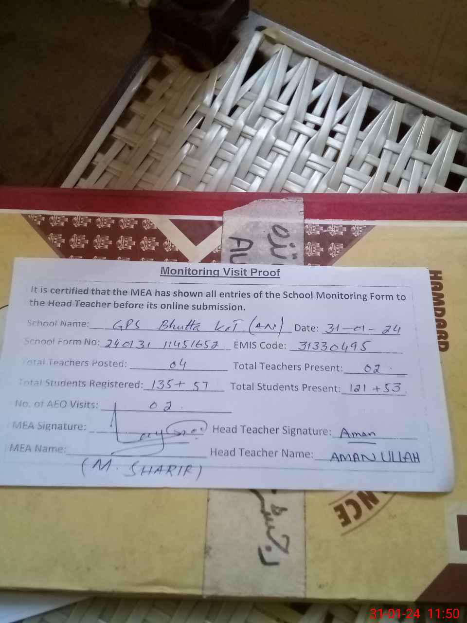 | EMIS Code: 31330495 | Name of School: GPS BHUTTA KOT | |||