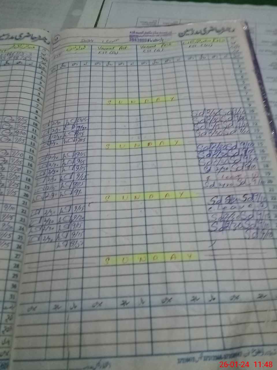 | CNIC | Full Name | Designation | R/C | Absence During Last Calender Month |
