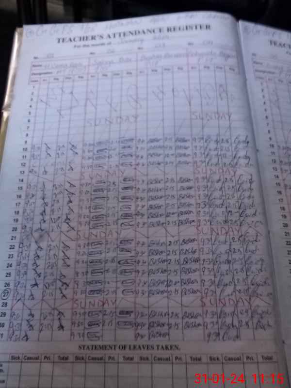 | 36**** | Bu**** Sh**** | 1 | 0 | 0 | 0 | 0 | 0 | 0 | 0 | 0 | 0 | Absent (Un-Authorized) | |