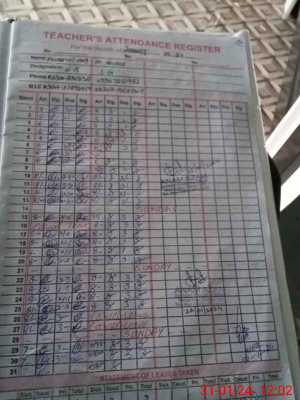 | Name: Za**** Ba**** Designation: (School Headmaster's/Headmistress's) PST Phone/Cell Number: 03**** |
