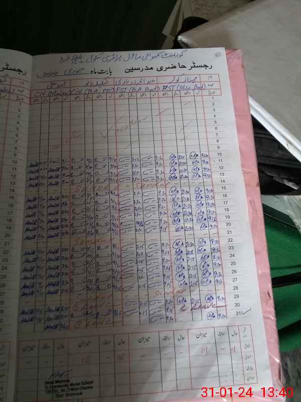 | CNIC | Full Name | Designation | R/C | Absence During Last Calender Month |