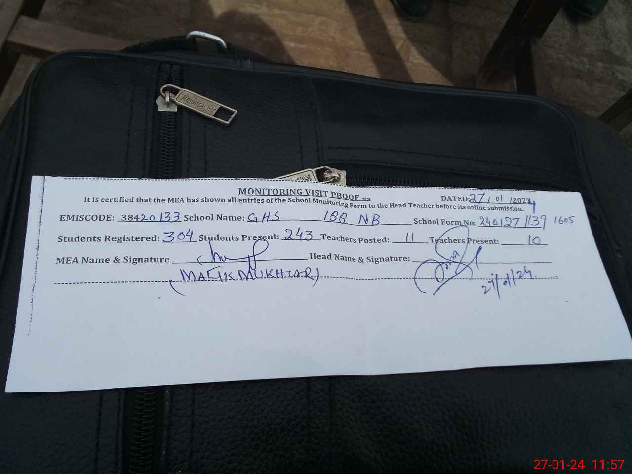 | EMIS Code: 38420133 | Name of School: GHS CHAK NO.188 NB | |||