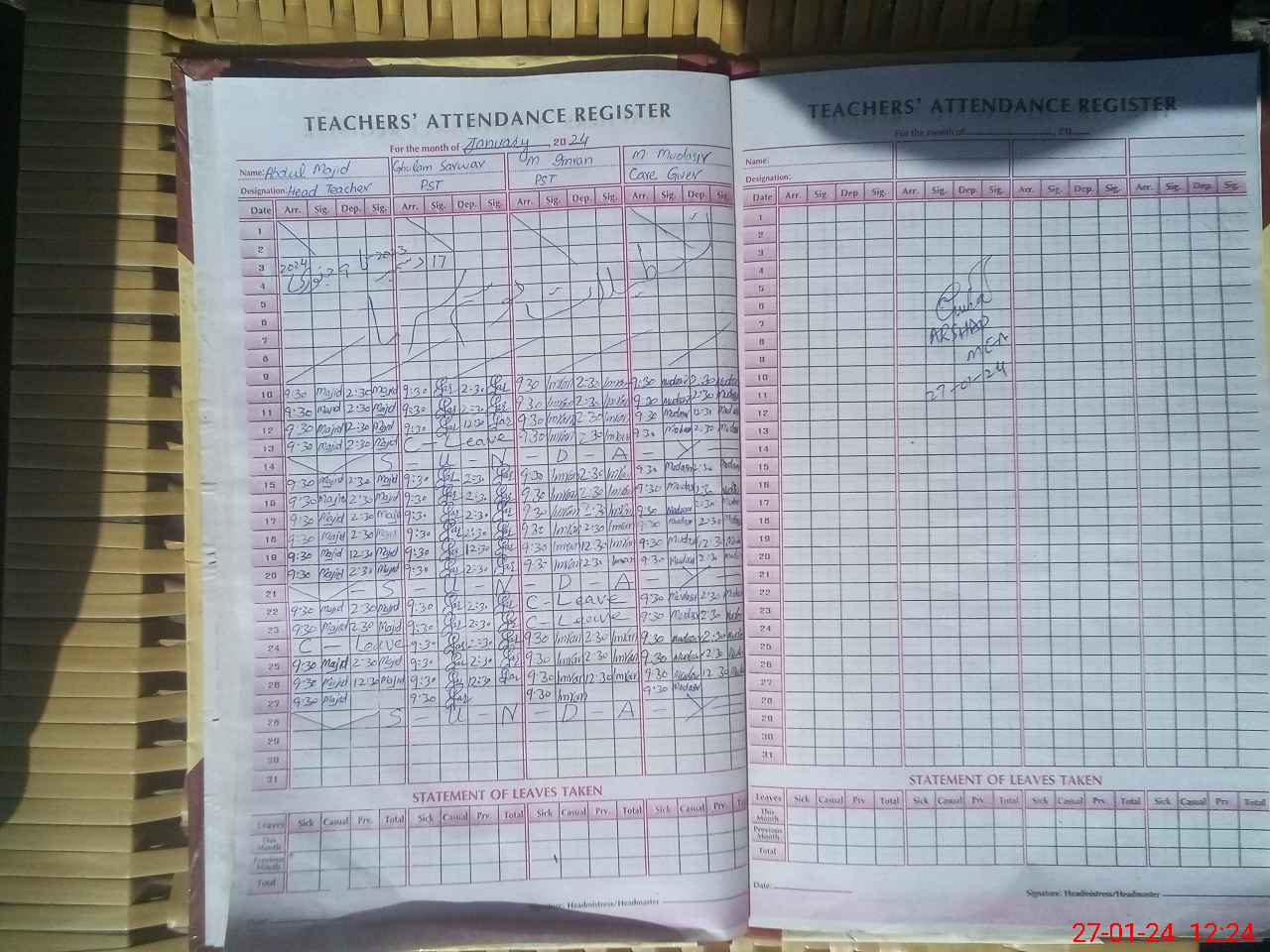 | Name: MU**** AH**** Designation: (School Headmaster's/Headmistress's) PST Phone/Cell Number: 03**** |
