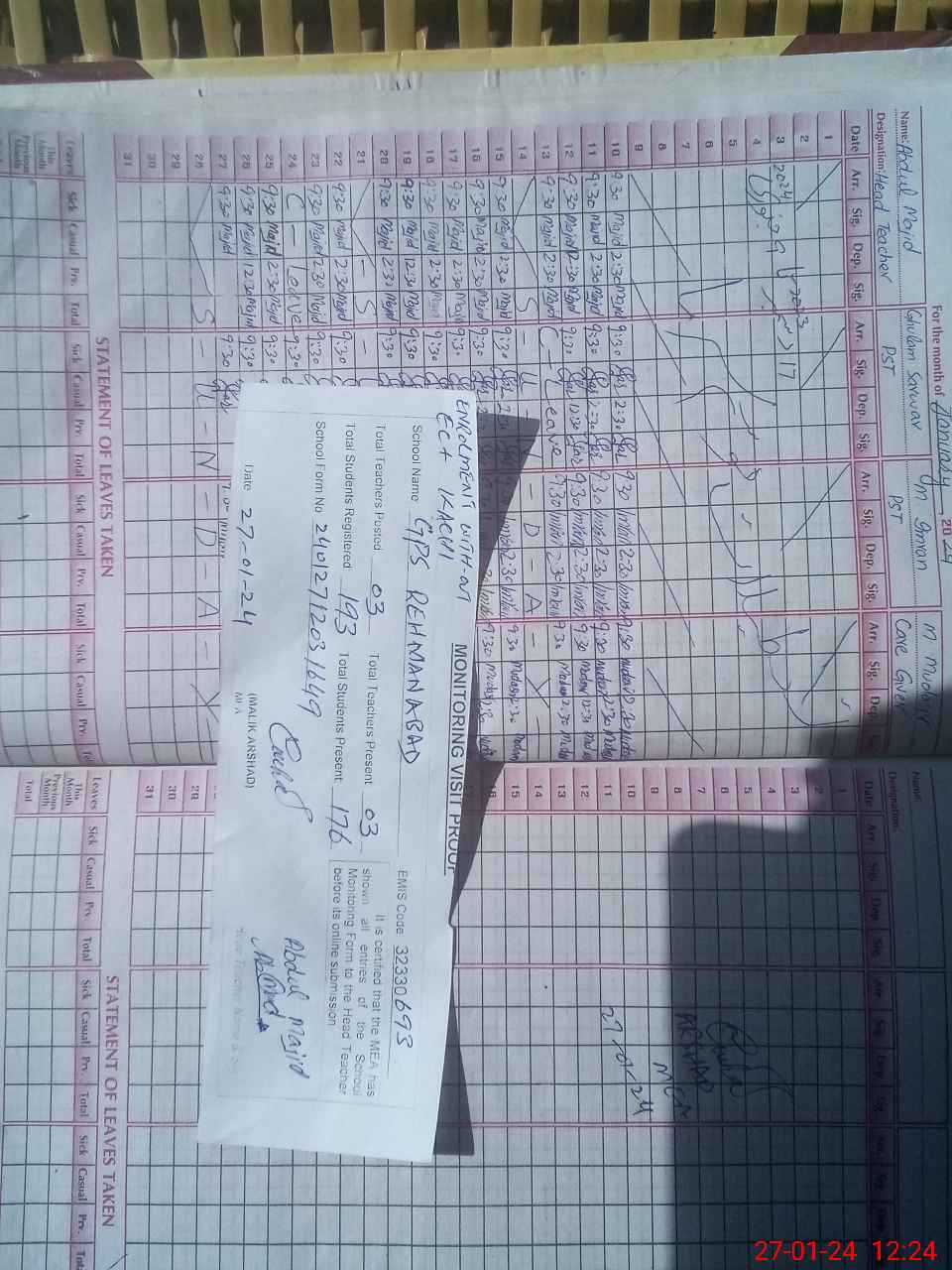 | Attendance Register | Head Teacher | MEA with School | Visit Proof |