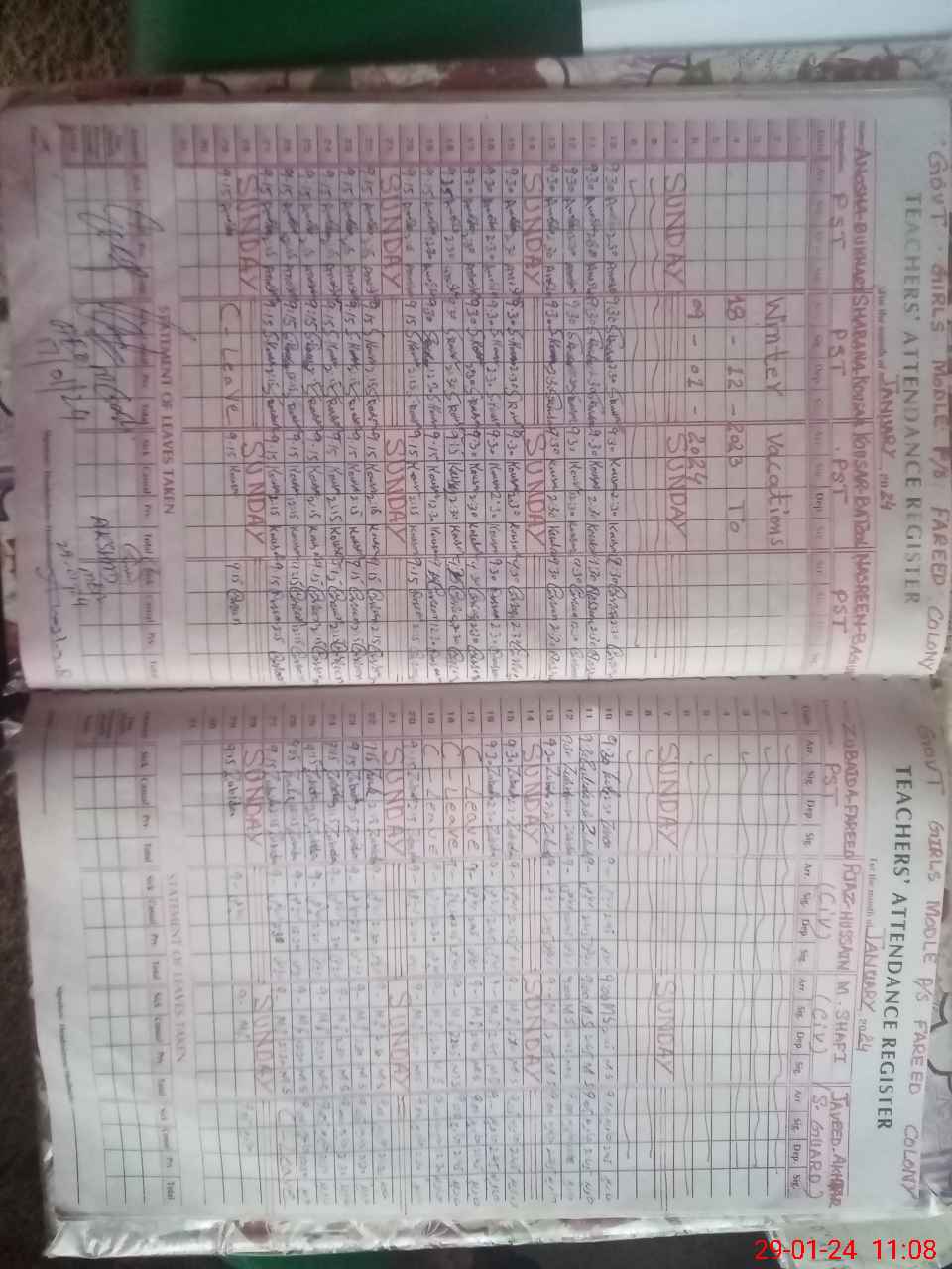 | CNIC | Full Name | Designation | R/C | Absence During Last Calender Month |
