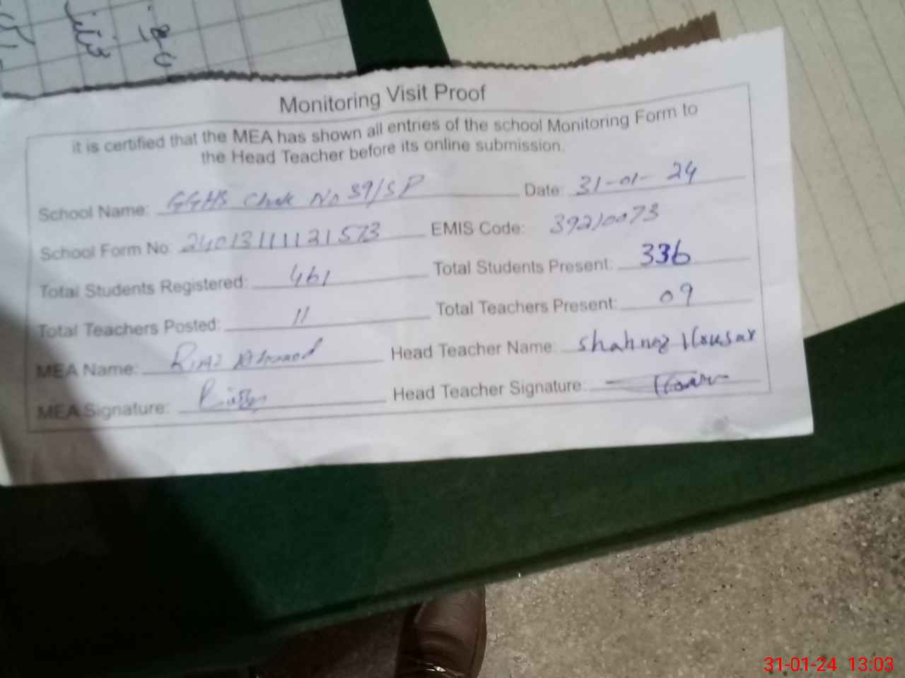 | EMIS Code: 39210073 | Name of School: GGHS CHAK NO.39 SP | |||