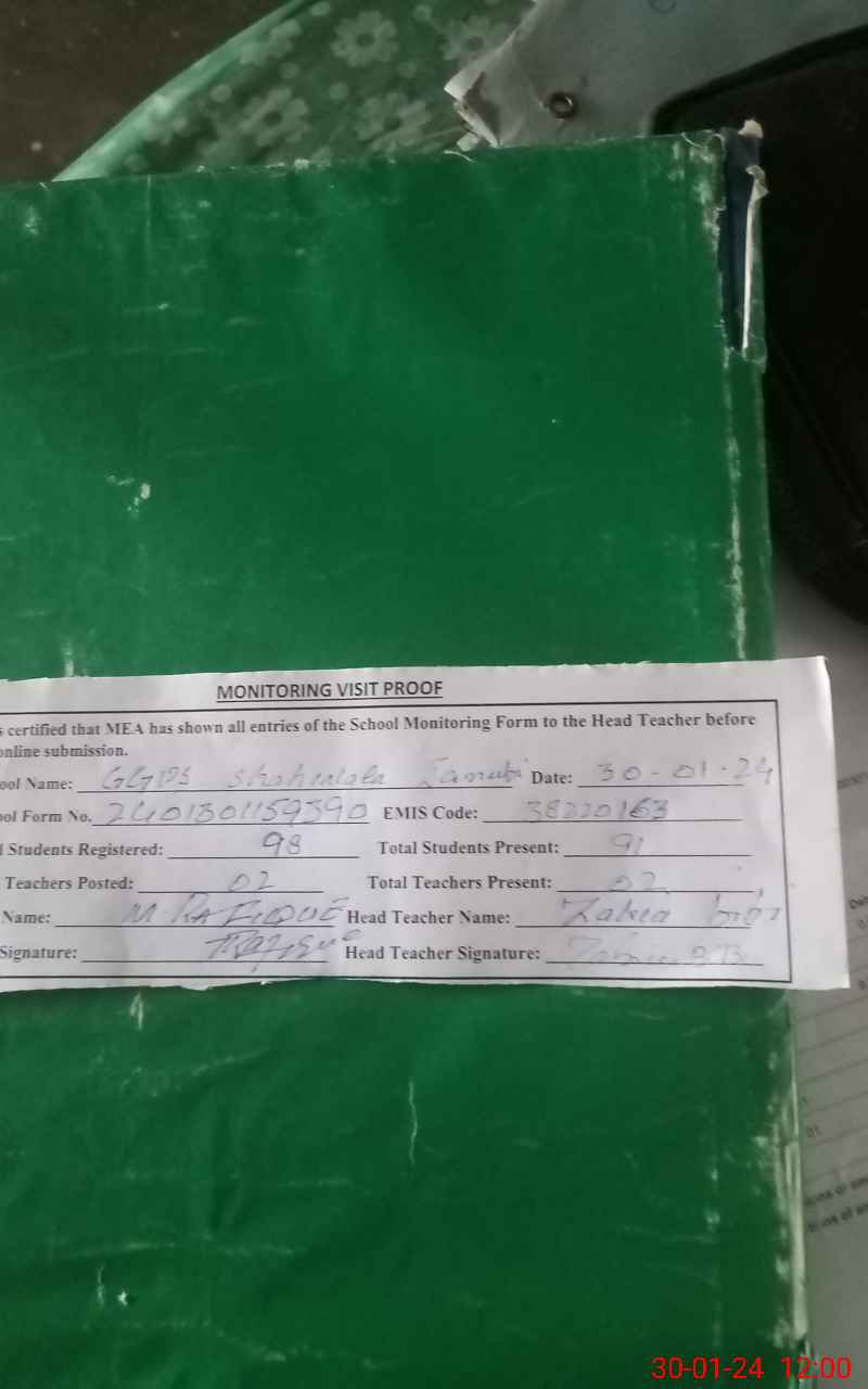 | Attendance Register | Head Teacher | MEA with School | Visit Proof |