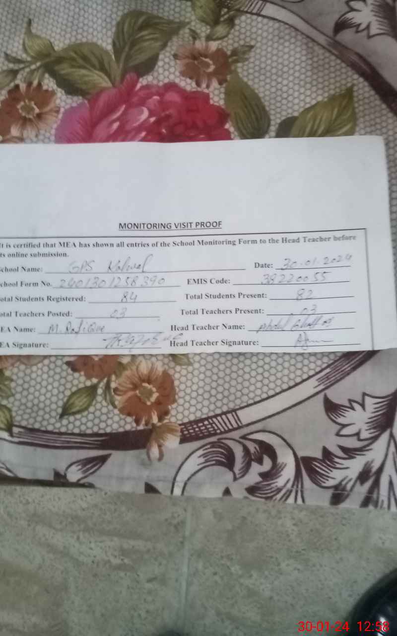 | EMIS Code: 38220055 | Name of School: GPS KALWAL | |||
