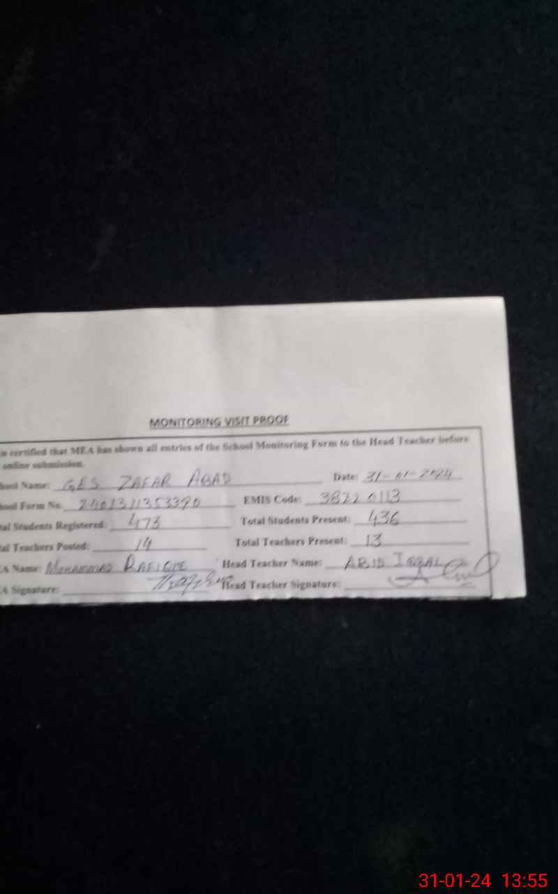 | EMIS Code: 38220113 | Name of School: GES ZAFAR ABAD RANG PUR BAGHOOR | |||