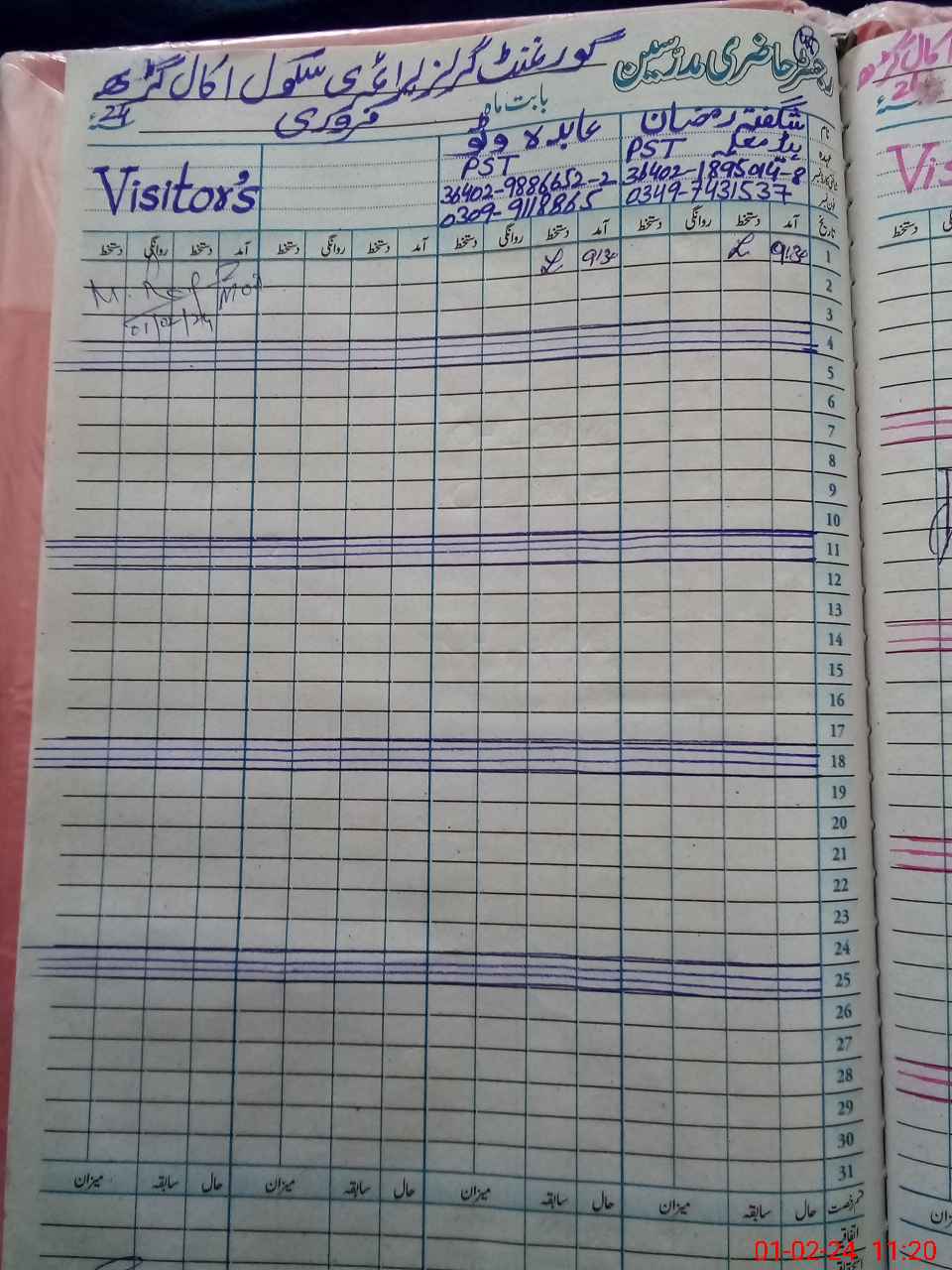 | Name: AB**** BI**** Designation: (School Headmaster's/Headmistress's) PST Phone/Cell Number: 03**** |
