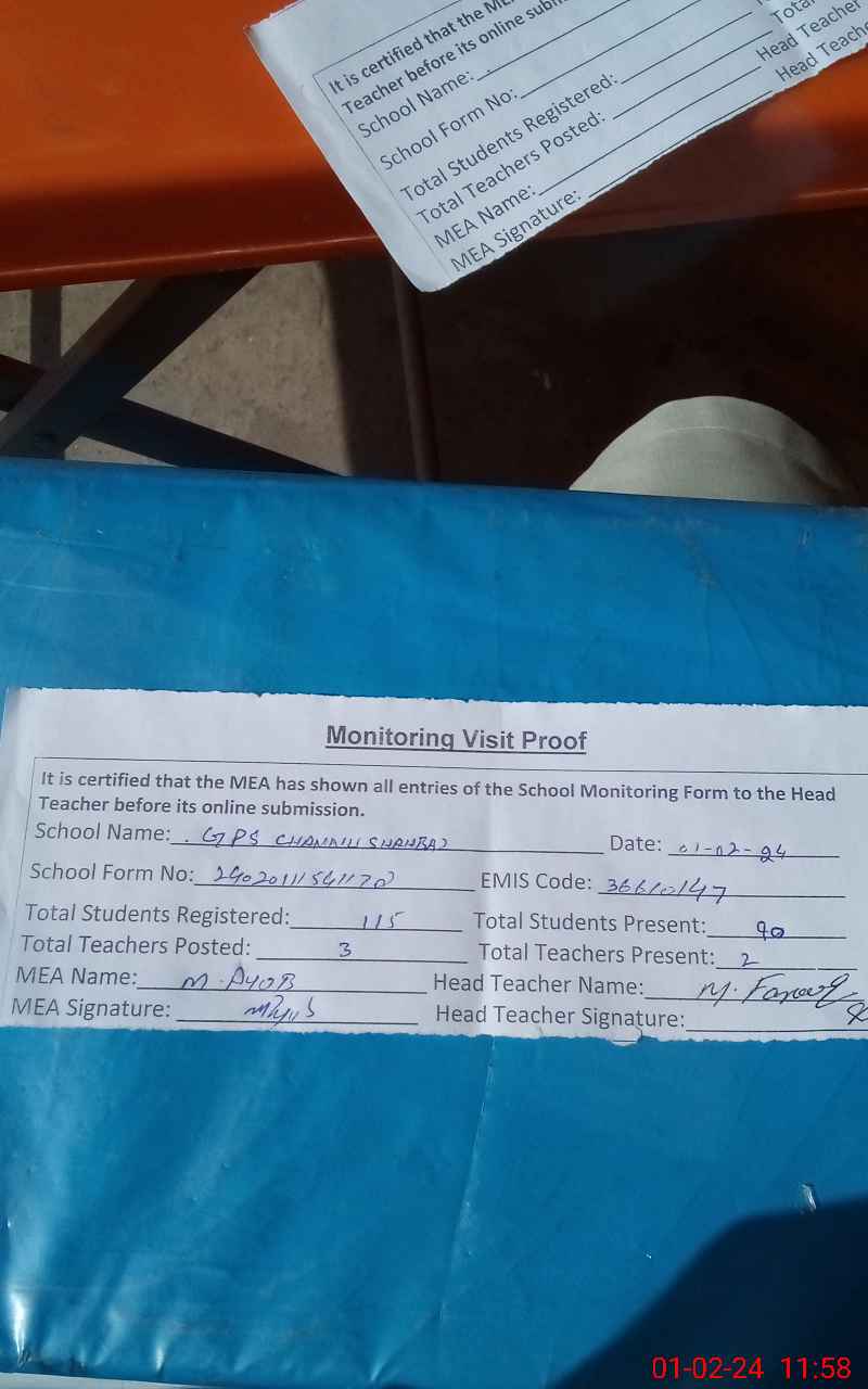 | EMIS Code: 36610147 | Name of School: GPS CHANNU SHAHBAZ | |||