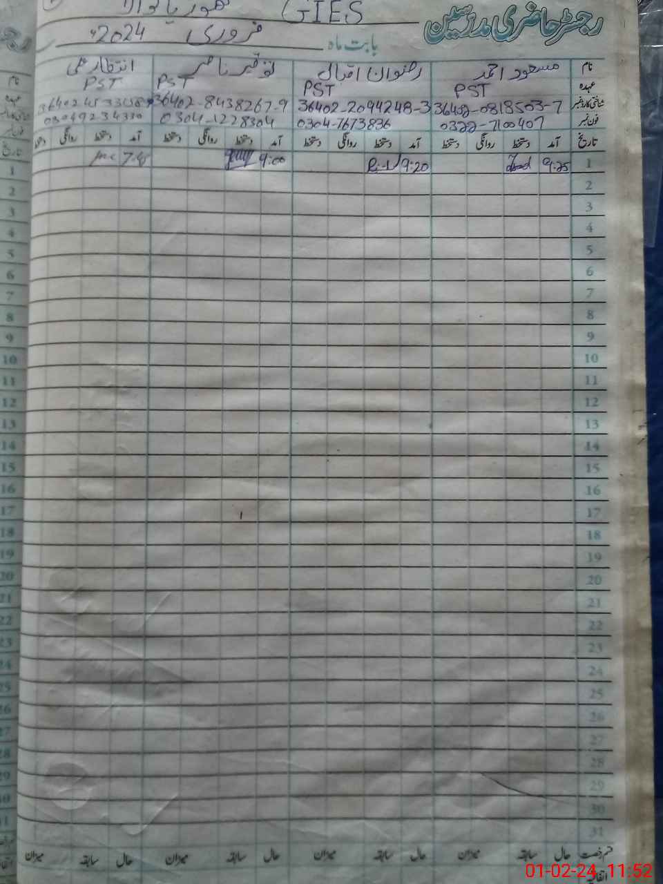 | CNIC | Full Name | Designation | R/C | Absence During Last Calender Month |