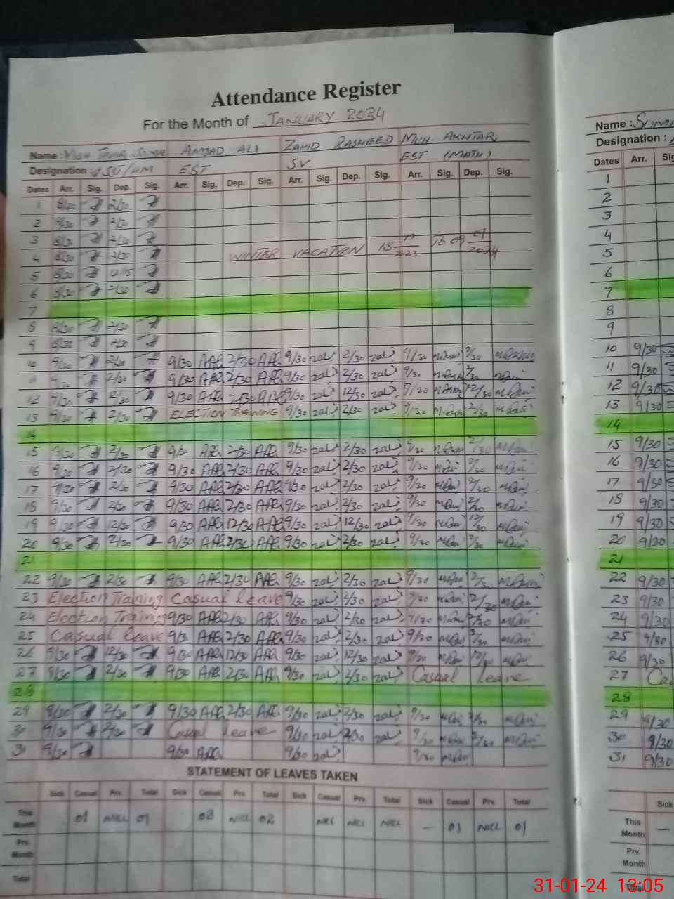 | Leave | Duty | Absent | Maternity | Medical | Ex- Pak |