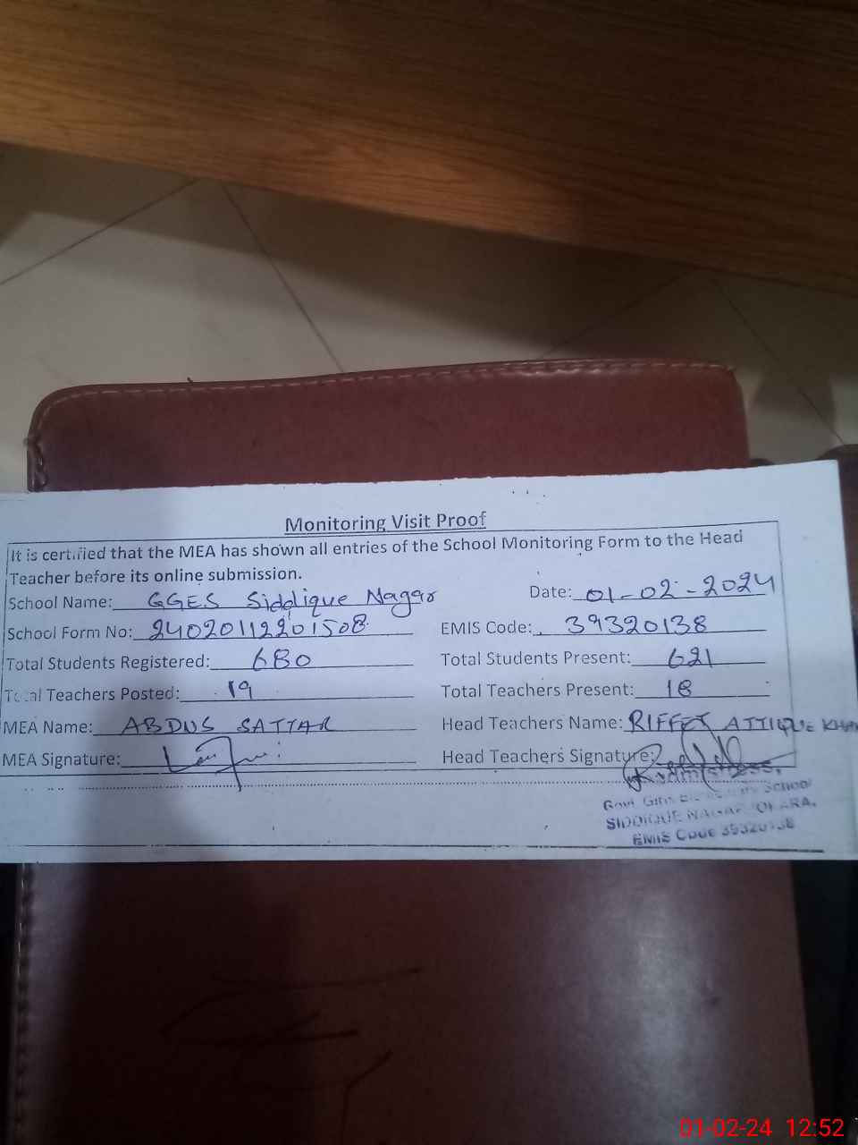 | EMIS Code: 39320138 | Name of School: GGES SIDDIQUE NAGAR OKARA | |||