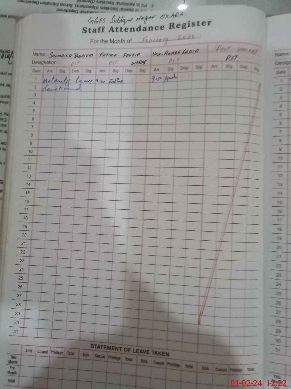 | 35**** | Sh**** Ta**** | PST | Regular | 31 | 0 | 0 | 31 | 0 | 0 | 0 | 0 | 0 | Maternity |