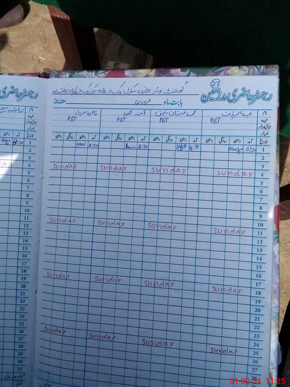 | Name: Mu**** Ir**** Ra**** Designation: (School Headmaster's/Headmistress's) PST Phone/Cell Number: 03**** |