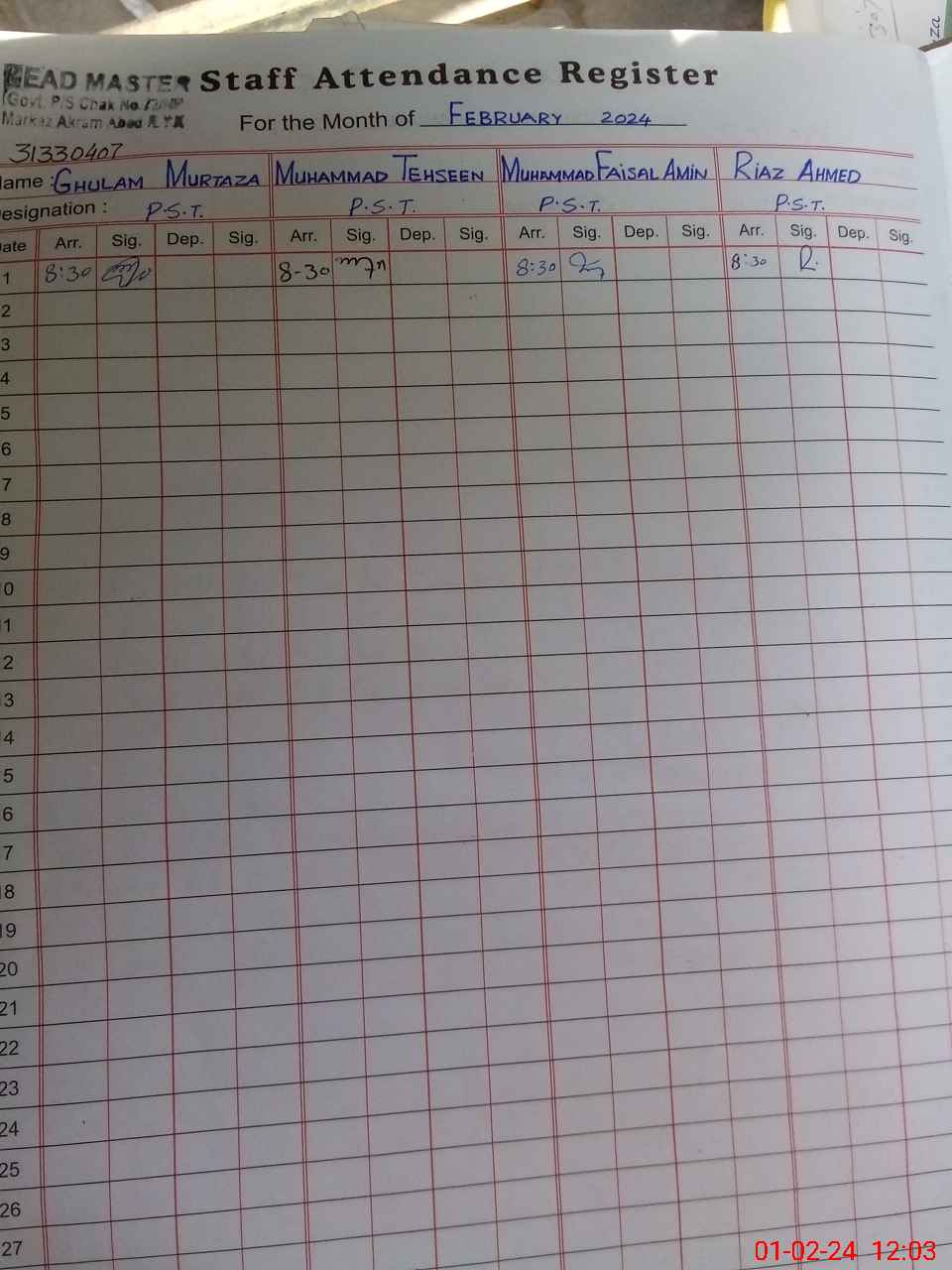 | Name: Mu**** Te**** Designation: (School Headmaster's/Headmistress's) PST Phone/Cell Number: 03**** |