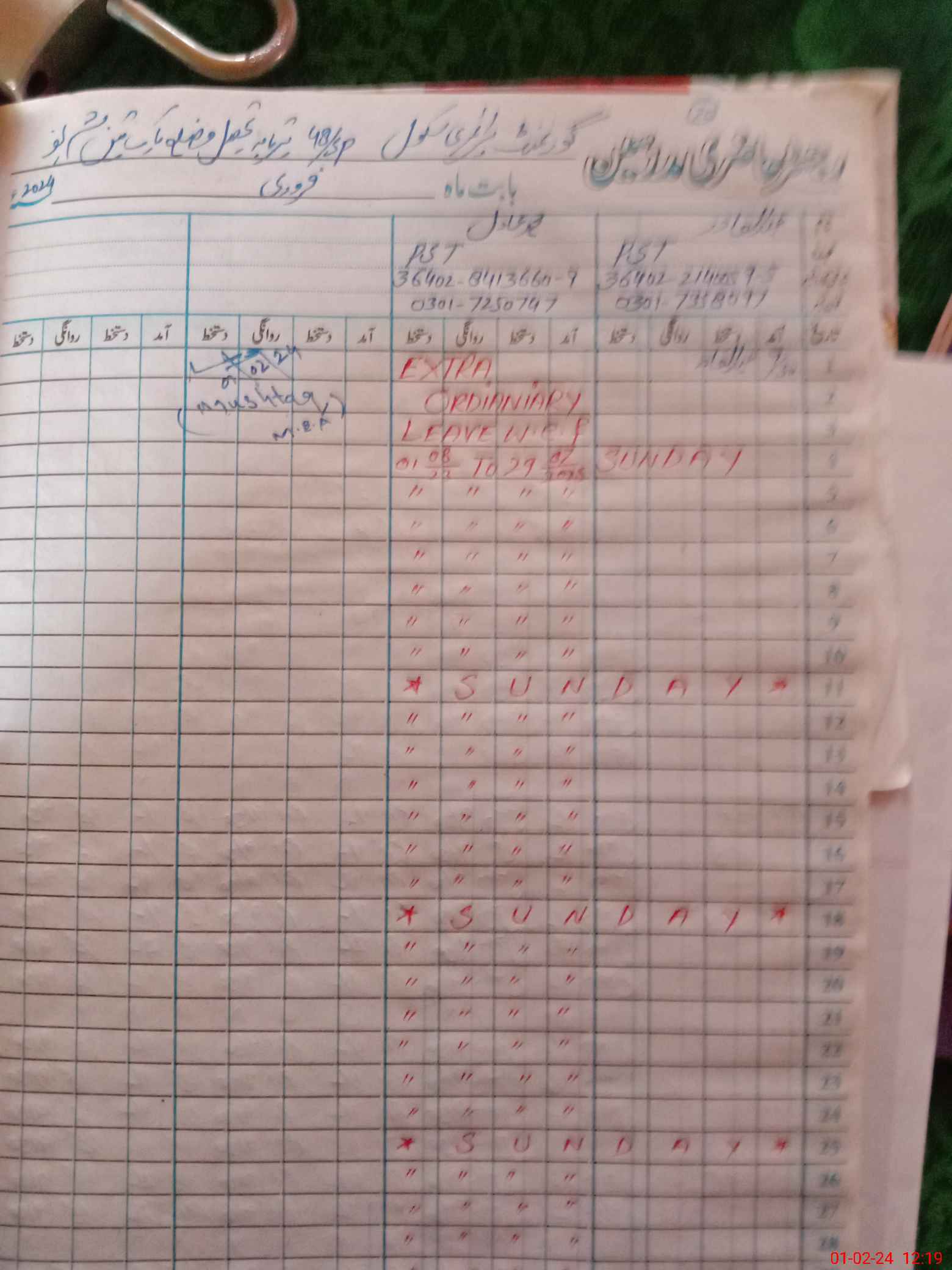 | Name: AB**** QA**** Designation: (School Headmaster's/Headmistress's) PST Phone/Cell Number: 03**** |