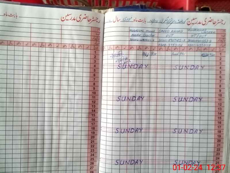 | Name: Mu**** Na**** Designation: (School Headmaster's/Headmistress's) PST Phone/Cell Number: 03**** |