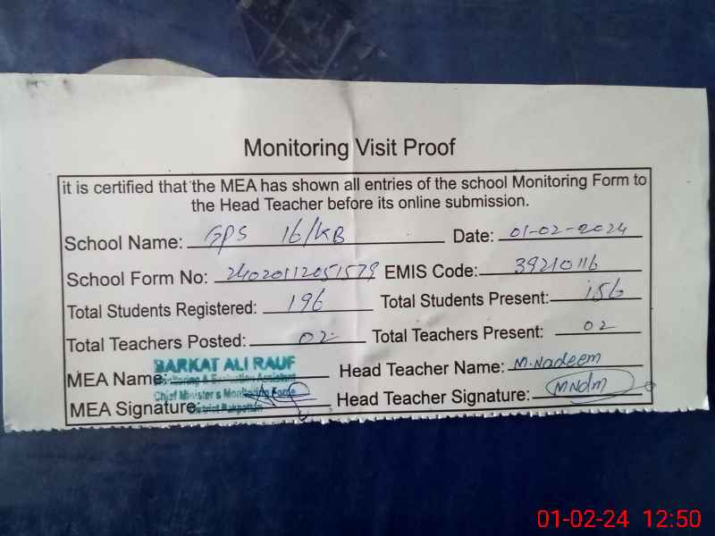 | EMIS Code: 39210116 | Name of School: GPS 16 KB | |||