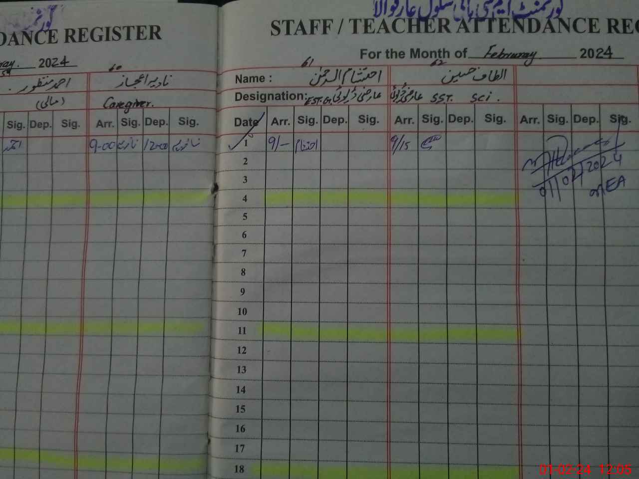| CNIC | Full Name | Designation | R/C | Absence During Last Calender Month |