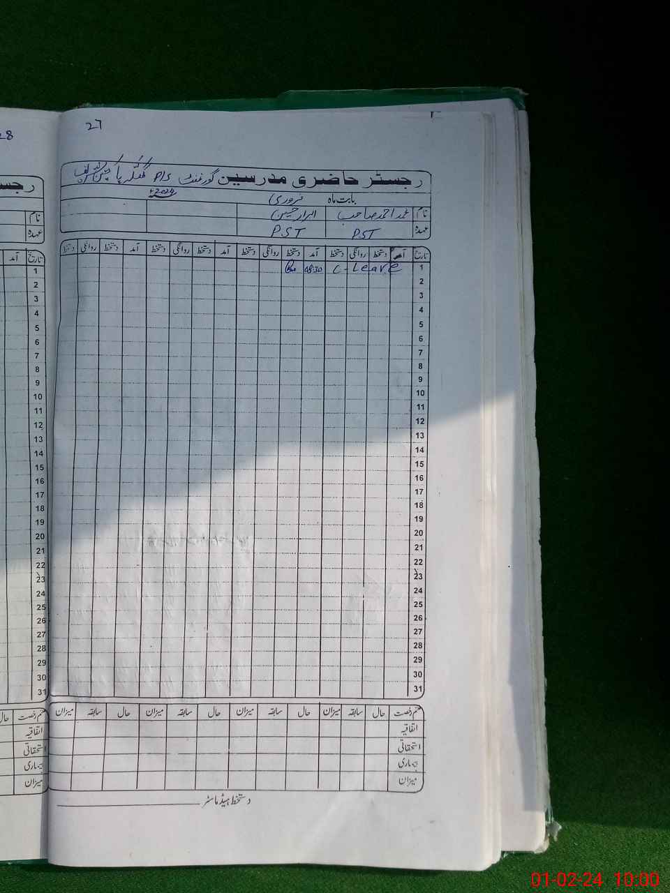 | Leave | Duty | Absent | Maternity | Medical | Ex- Pak |