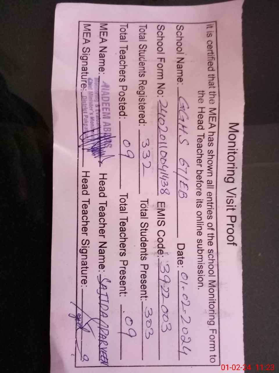 | EMIS Code: 39220036 | Name of School: GGHS 67 EB | |||