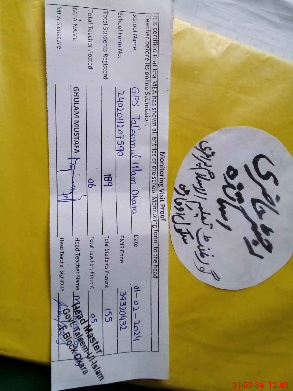 | EMIS Code: 39320432 | Name of School: GPS TALEEM-UL-ISLAM | |||