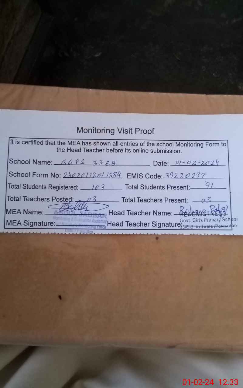 | EMIS Code: 39220297 | Name of School: GGPS 33 EB | |||