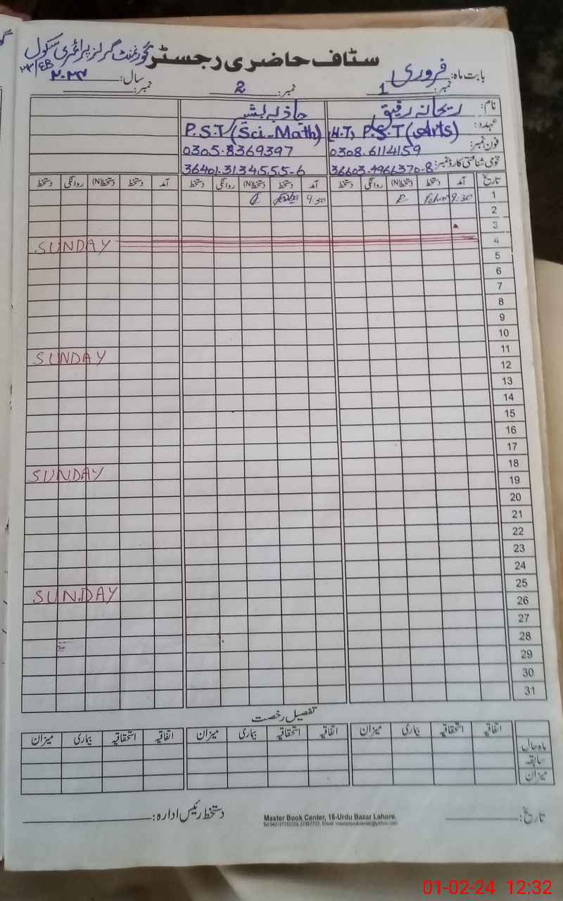 | Name: RE**** RA**** Designation: (School Headmaster's/Headmistress's) PST Phone/Cell Number: 03**** |