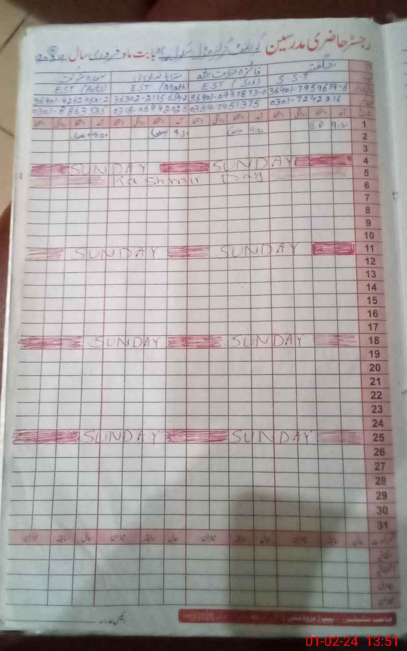 | Name: SH**** Designation: (School Headmaster's/Headmistress's) SST (GENERAL) Phone/Cell Number: 03**** |