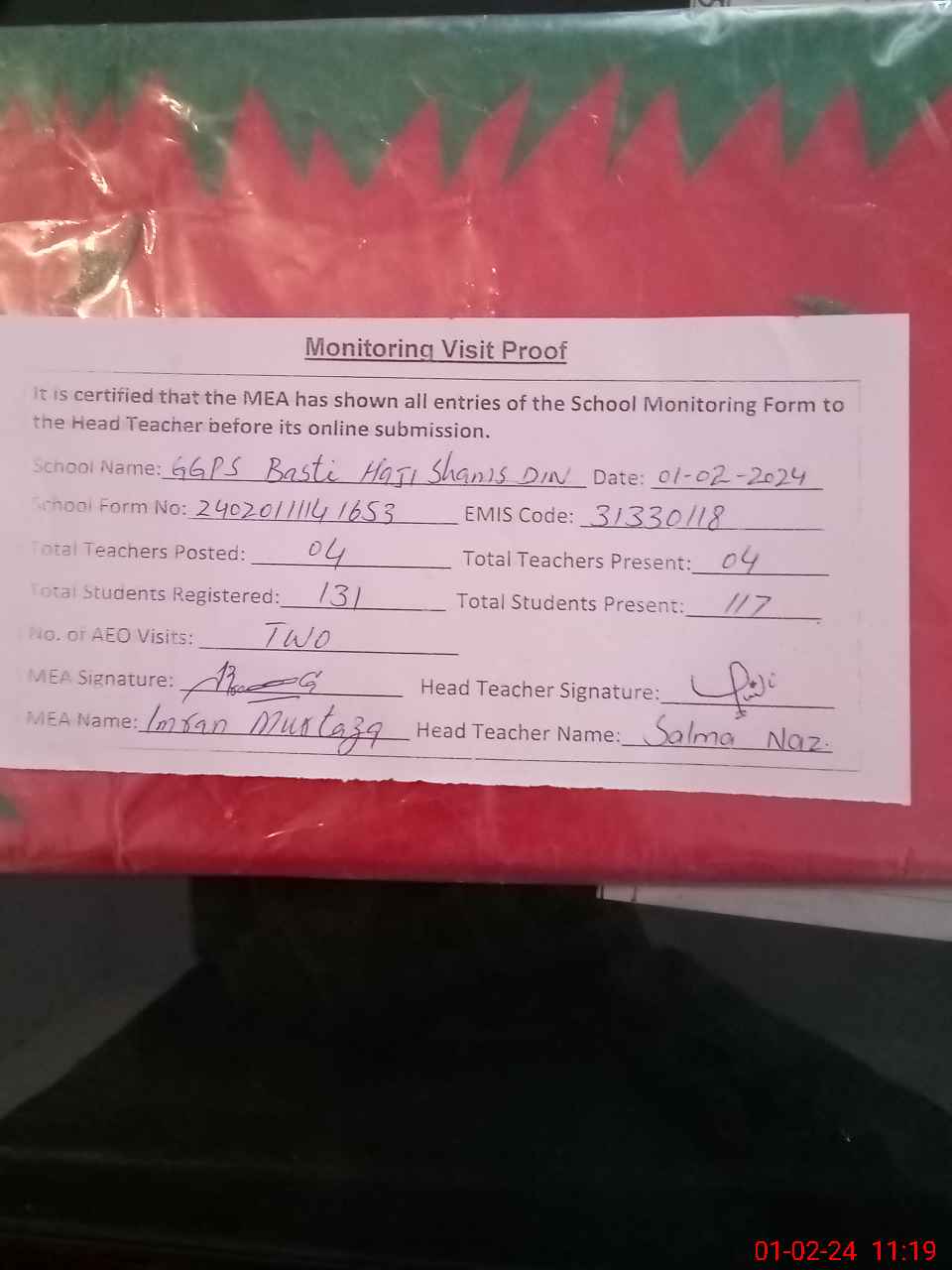 | EMIS Code: 31330118 | Name of School: GGPS BASTI HAJI SHAMS DIN | |||