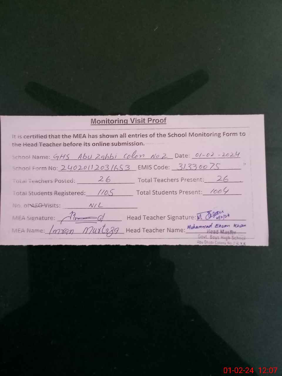 | EMIS Code: 31330075 | Name of School: GHS ABU DAHBI COLONY NO. 2 | |||