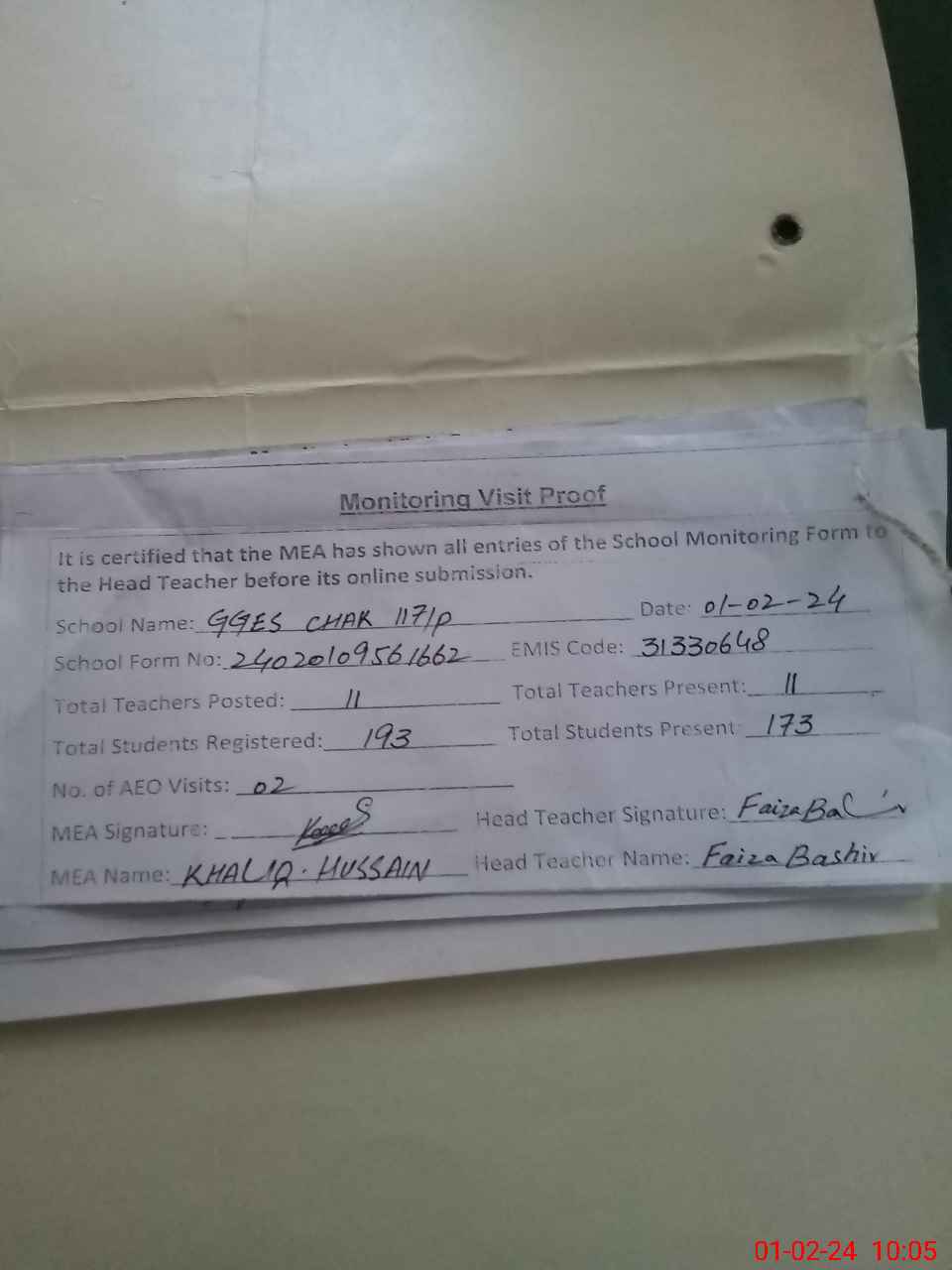 | EMIS Code: 31330648 | Name of School: GGES CHAK NO. 117/P | |||