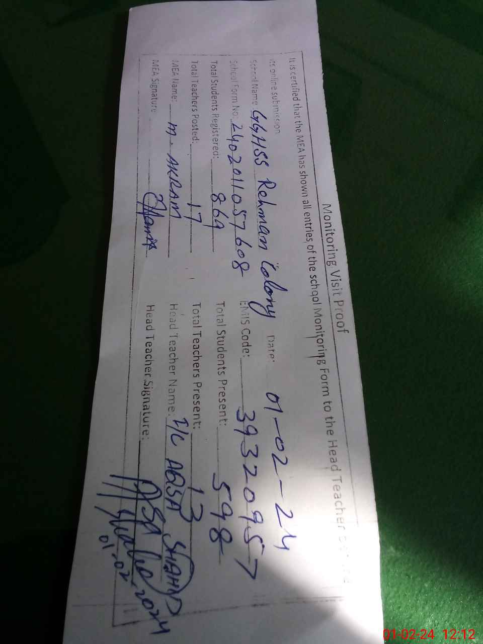 | EMIS Code: 39320957 | Name of School: GGHSS REHMAN COLONY OKARA | |||