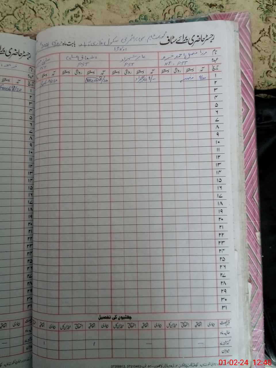 | Name: As**** Al**** Designation: (School Headmaster's/Headmistress's) PST Phone/Cell Number: 03**** |