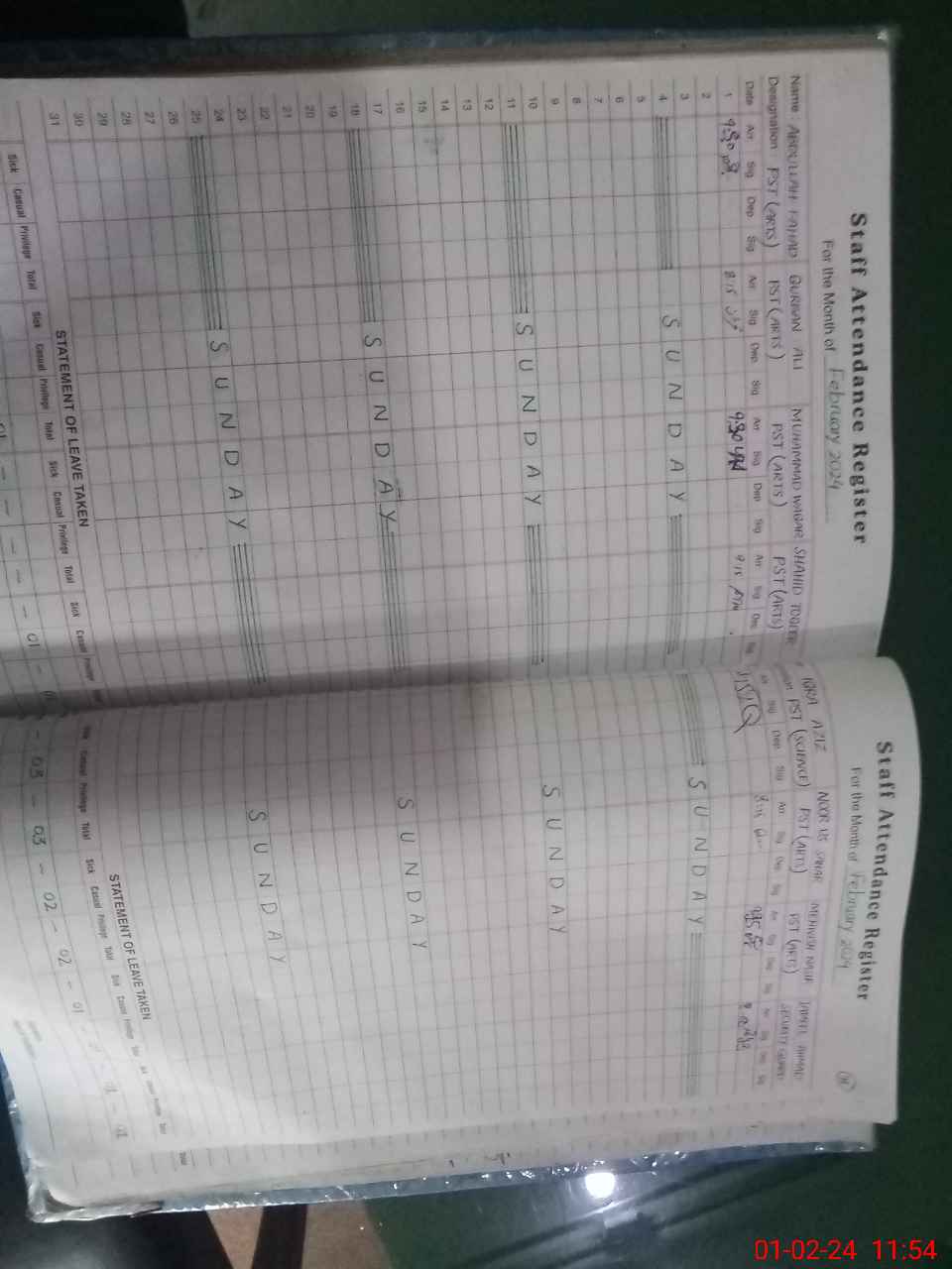 | CNIC | Full Name | Designation | R/C | Absence During Last Calender Month |
