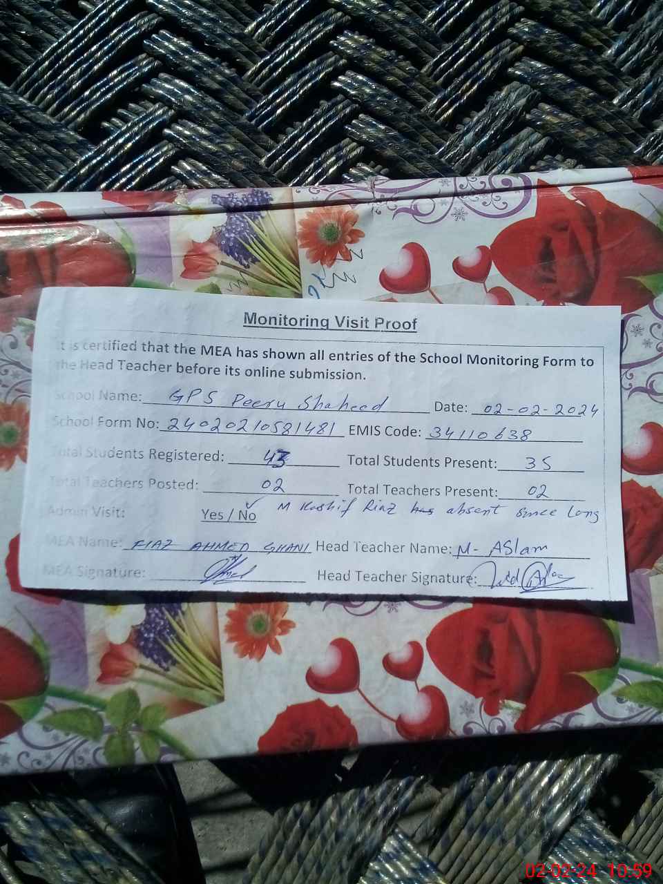 | EMIS Code: 34110638 | Name of School: GPS PEERU SHAHEED | |||