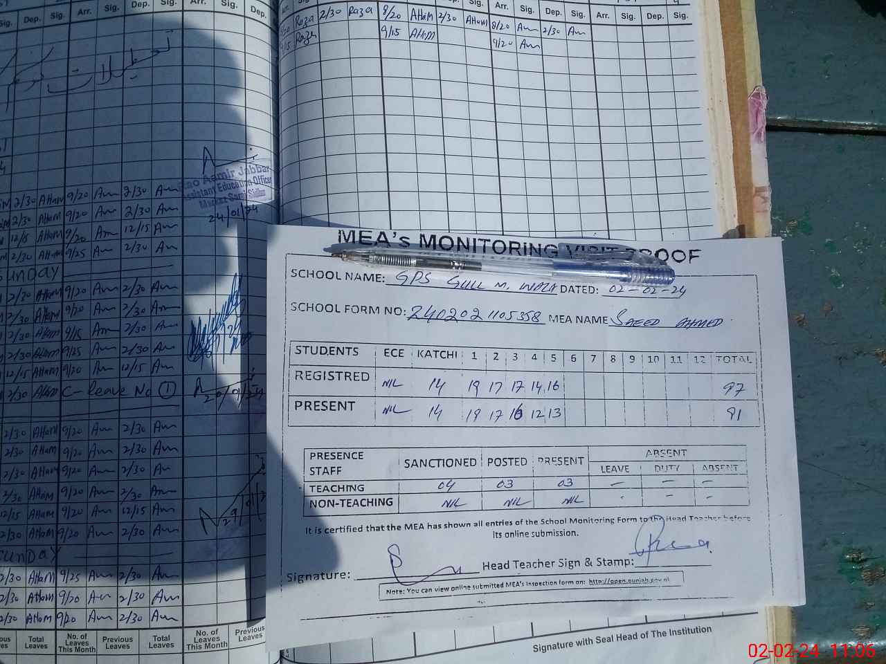 | Attendance Register | Head Teacher | MEA with School | Visit Proof |