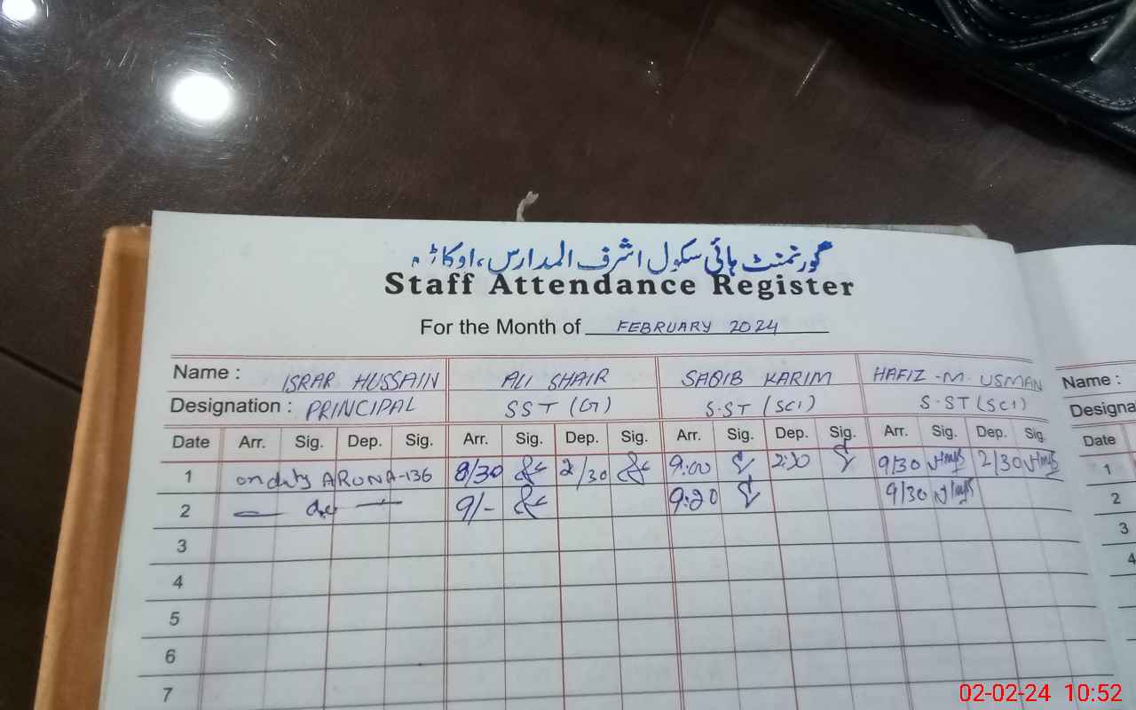 | CNIC | Full Name | Designation | R/C | Absence During Last Calender Month |