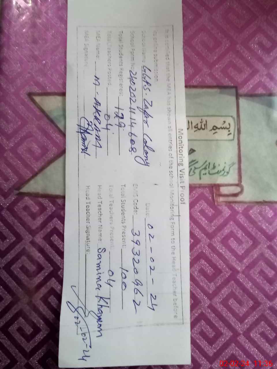 | EMIS Code: 39320962 | Name of School: GGPS MC ZAFAR COLONY | |||