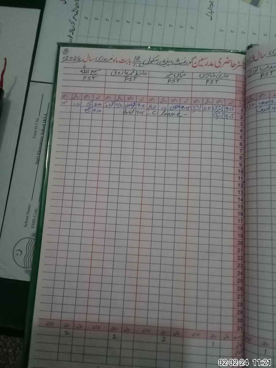 | CNIC | Full Name | Designation | R/C | Absence During Last Calender Month |