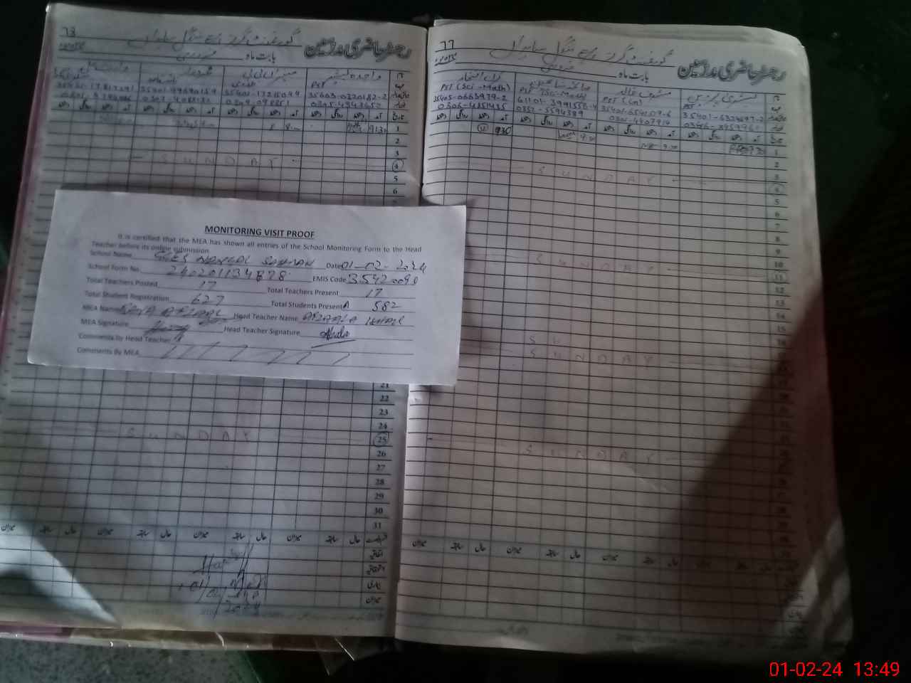 | Attendance Register | Head Teacher | MEA with School | Visit Proof |